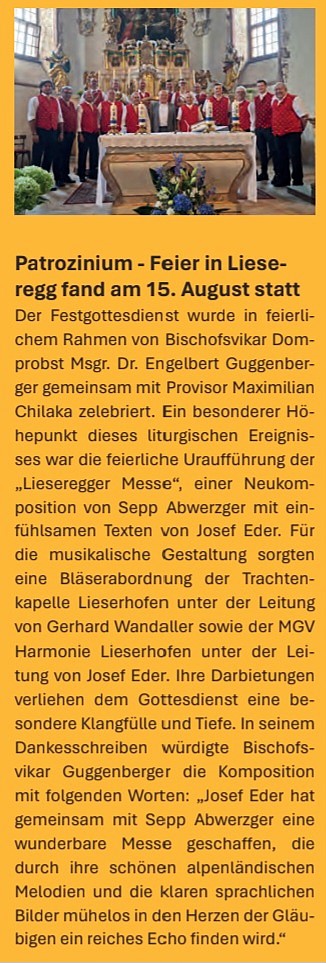 Uraufführung - Lieseregger Festmesse